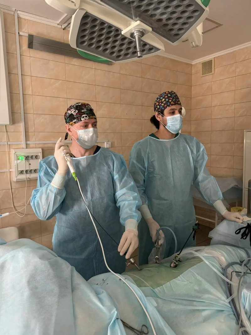 «Лапароскопическая пиелопластика — это современный и малоинвазивный вариант пластики лоханочно-мочеточникового сегмента. Доступ организуется через небольшие проколы размером до одного сантиметра. Дальнейшие манипуляции осуществляются под визуальным контролем на мониторе, такой метод минимизирует повреждения тканей и органов. В ходе операции выделяется мочеточник, почка, ее лоханка, отсекается участок с сужением, с последующим восстановлением целостности и проходимости мочевыводящих путей. Далее, через этот же доступ с помощью специального фиброскопа у пациентки удалили камни в почке.